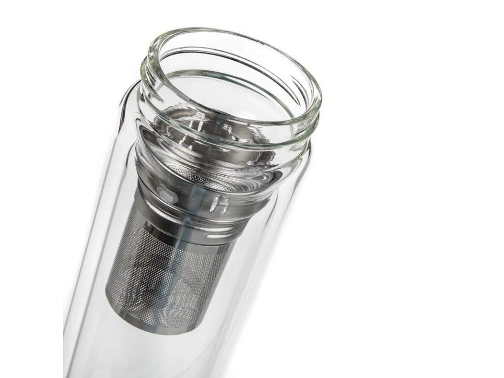 Součástí lahve je dvoudílné sítko na sypaný čaj z nerezové oceli – spodní část slouží k samotnému louhování, zatímco horní díl funguje jako jemné sítko, které zachytí i drobné lístky. Díky tomu je možné pít z lahve i během louhování, protože obsah sítka je uzavřený a tekutina volně protéká okolo. Už žádné přelévání ani čekání – vychutnejte si čaj pohodlně a kdykoli.
