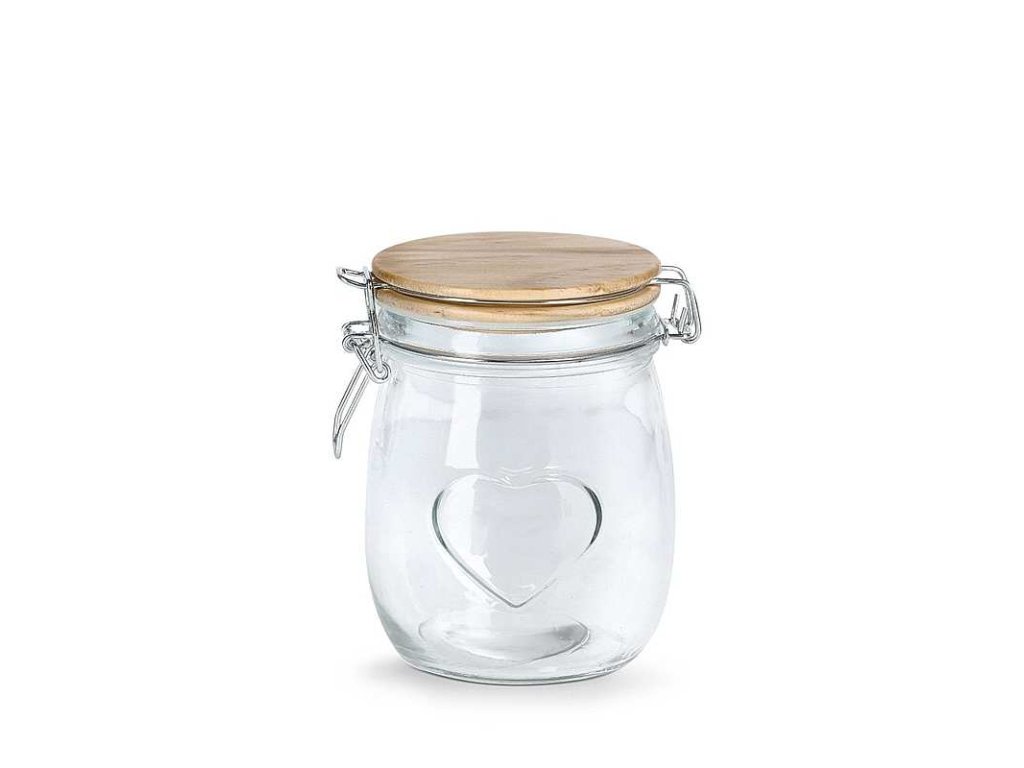 Skleněné tělo je zdobeno jemným motivem srdce, který krásně doplní kuchyně v moderním country nebo venkovském stylu. Celkový vzhled podtrhuje víčko z přírodního dřeva, jež dóze dodává hřejivý, přírodní charakter a zároveň působí elegantně jako dekorace na polici nebo kuchyňské lince.