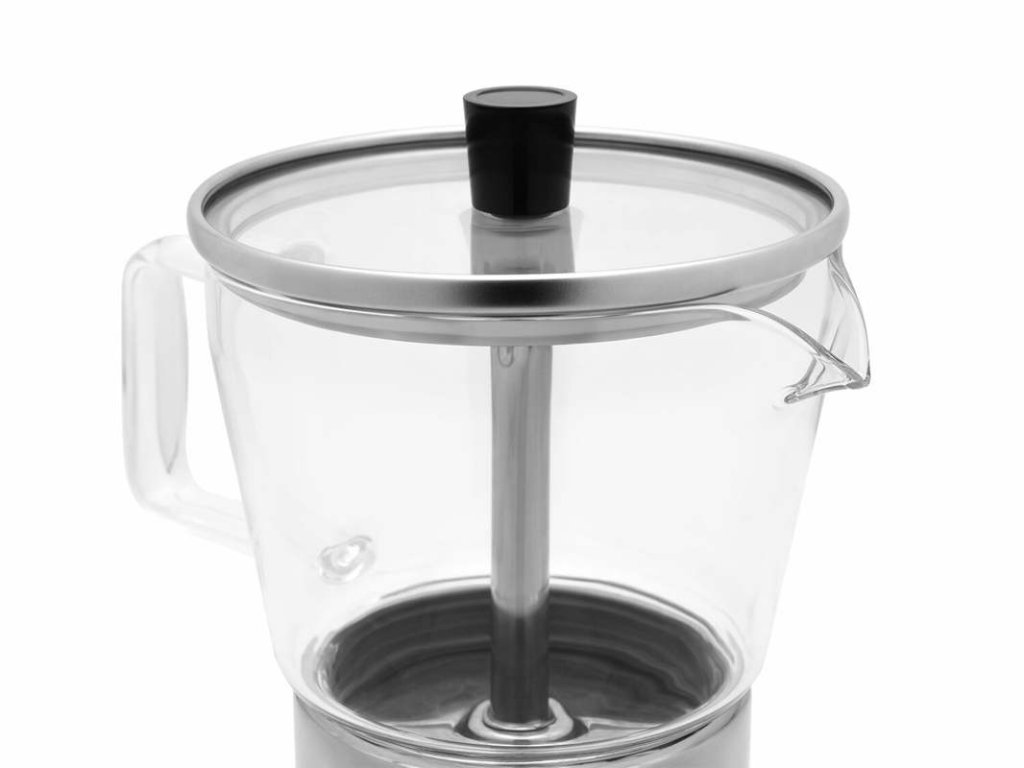 Velkou výhodou této moka konvičky je skleněná horní nádoba, díky které můžete sledovat celý proces přípravy kávy. Přesně tak víte, kdy je káva hotová a připravená k servírování. Praktická rukojeť zároveň zajišťuje pohodlnou a bezpečnou manipulaci při nalévání.