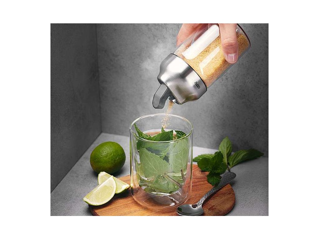 Tato cukřenka má nerezové víčko s dávkovačem, který sám otevře uzávěr při mírném naklonění. To znamená, že dávkování je naprosto bez námahy – žádné škrábání a žádný nepořádek! Stačí naklonit a cukr nebo mléko se snadno dostanou tam, kde je chcete mít.