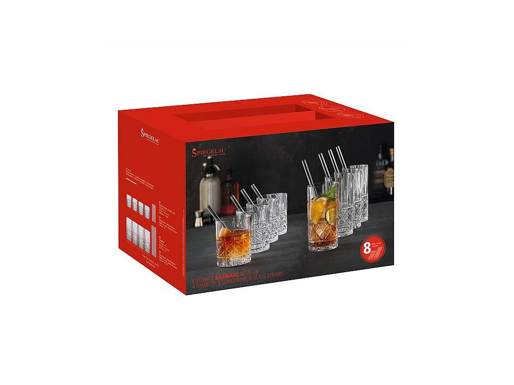- Elegance barware set: 8x sklenice a 8x skleněné brčko