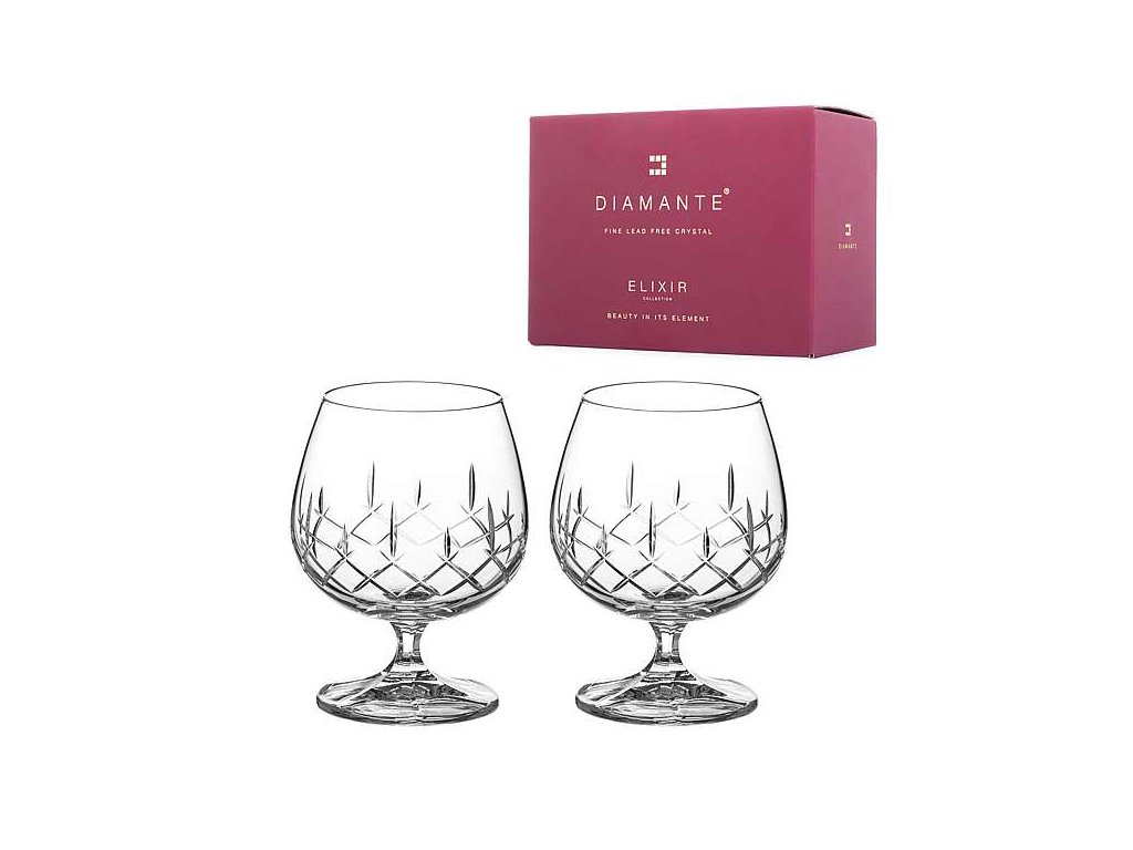 Ve dvou nemusíte popíjet jen víno. Zkuste příští slavnostní večeři zahájit koňakem či jinou brandy. Nápoj vám pomůžou dostatečně důstojně ustrojit tyto dvě koňakové skleničky značky Diamante, které do našeho obchodu doputovaly ze sousedního Slovenska. Jak už je u skleniček na brandy zvykem, na kratší nožce mají usazený polouzavřený balónovitý kalíšek, který v tomto případě zdobí broušený mřížkovitý vzor. Díky zúženému ústnímu okraji se aromatické látky koncentrují uvnitř kalíšku a poskytnou vám tak při ochutnávání nápoje dokonalý požitek. Na výrobu sady bylo použito kvalitní bezolovnaté křišťálové sklo, které vyniká svou pevností. Nemusíte se bát ani toho, že by sklenicím uškodilo mytí v myčce na nádobí.