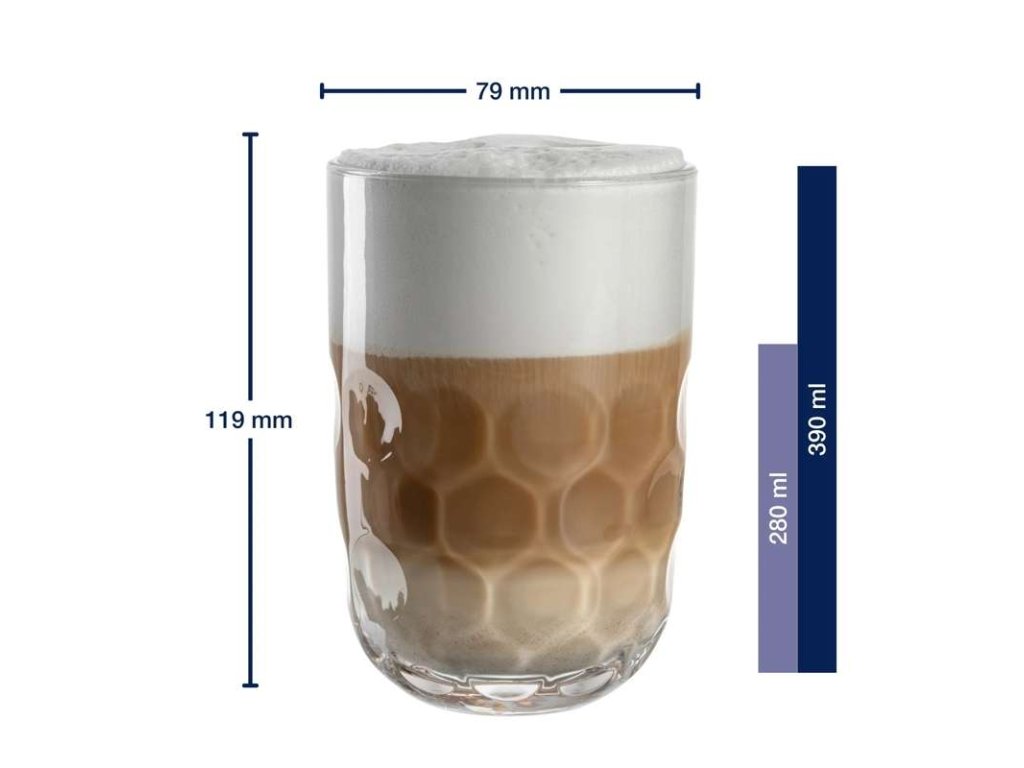 • sklenice mají dostatek prostoru pro kávu i bohatou mléčnou pěnu