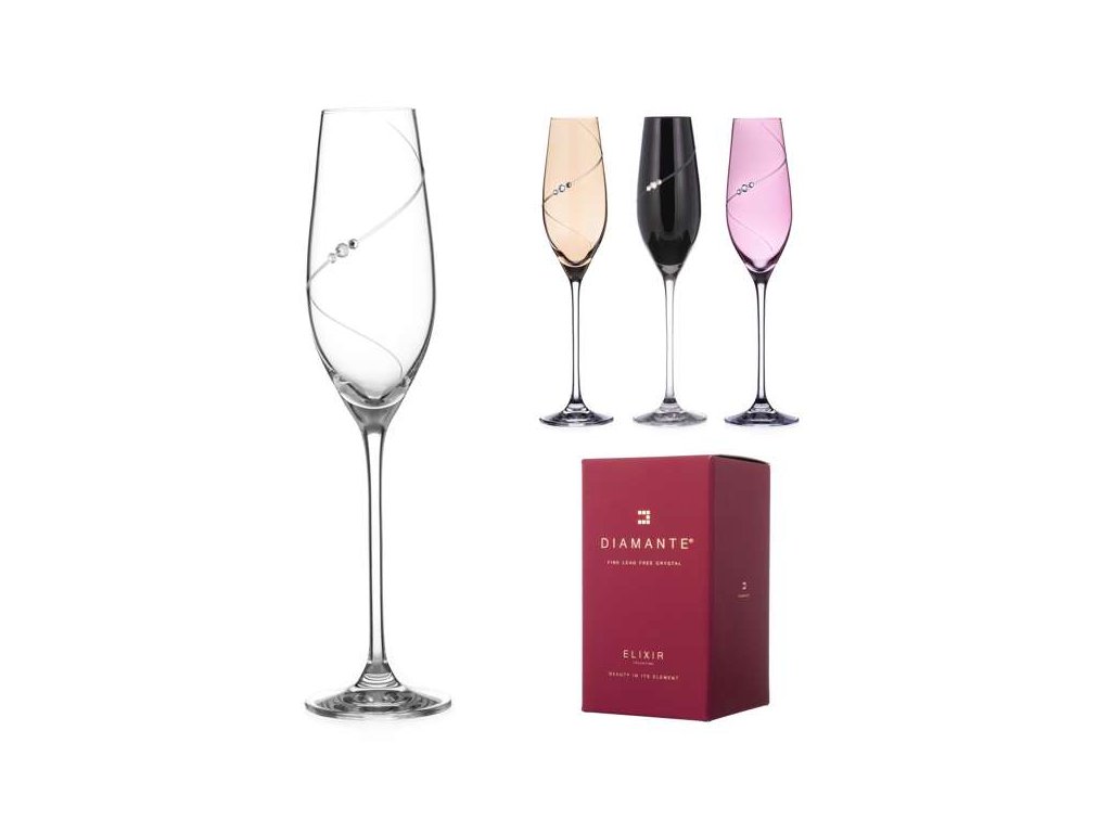 Sada sklenic na sekt Diamante Silhouette selection přináší dokonalé spojení elegance, řemeslné preciznosti a luxusu. Čtyři sklenice o objemu 210 ml jsou vyrobeny z kvalitního bezolovnatého křišťálového skla a každá z nich je zdobena třemi jemně vsazenými krystaly Swarovski Elements. Spirálovitá diarytem broušená linka, která se vine po obvodu kalíšku, vytváří působivý vizuální efekt, zatímco barevně stříkané kalíšky dodávají sklenicím moderní šmrnc. Hladké bezešvé provedení podtrhuje celkový dojem luxusu a čistoty tvaru. Díky přítomnosti krystalů je doporučeno šetrné ruční mytí, které zachová jejich zářivý vzhled po dlouhou dobu. Tyto sklenice jsou ideální volbou pro výjimečné chvíle i jako elegantní dárek.