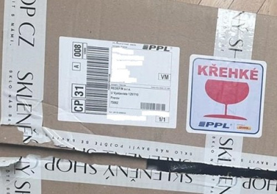 - adresní štítek a štítku „Pozor křehké“ (pokud na balíku je nalepen)